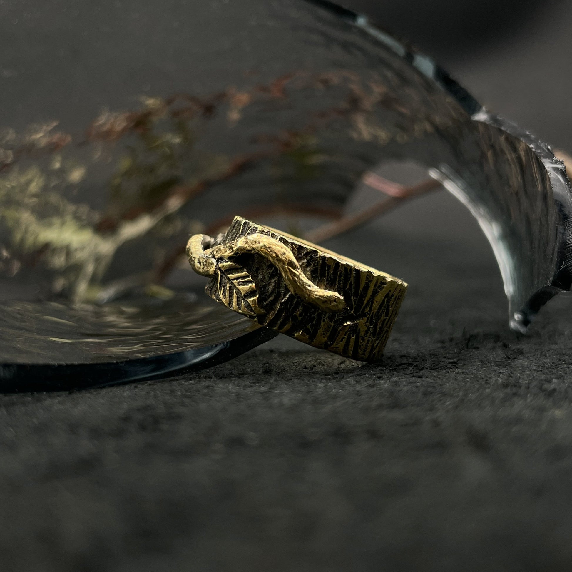 Žiedo dizainas įkvėptas senųjų baltų pagarbos miškui ir jo dvasioms. Kiekviena linija šiame kūrinyje yra išgraviruota ranka, lėtai ir sąmoningai, todėl kiekvienas žiedas tampa vieninteliu ir nepakartojamu kūriniu.